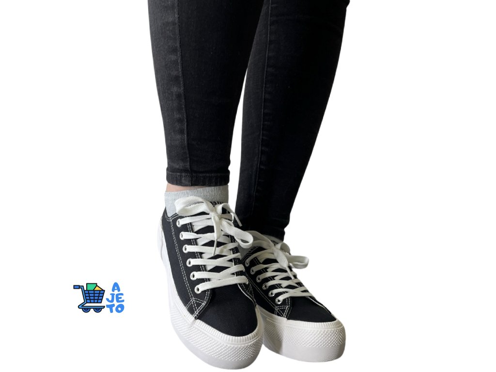 Dámske šnurovacie plátené tenisky čierne 1002-1