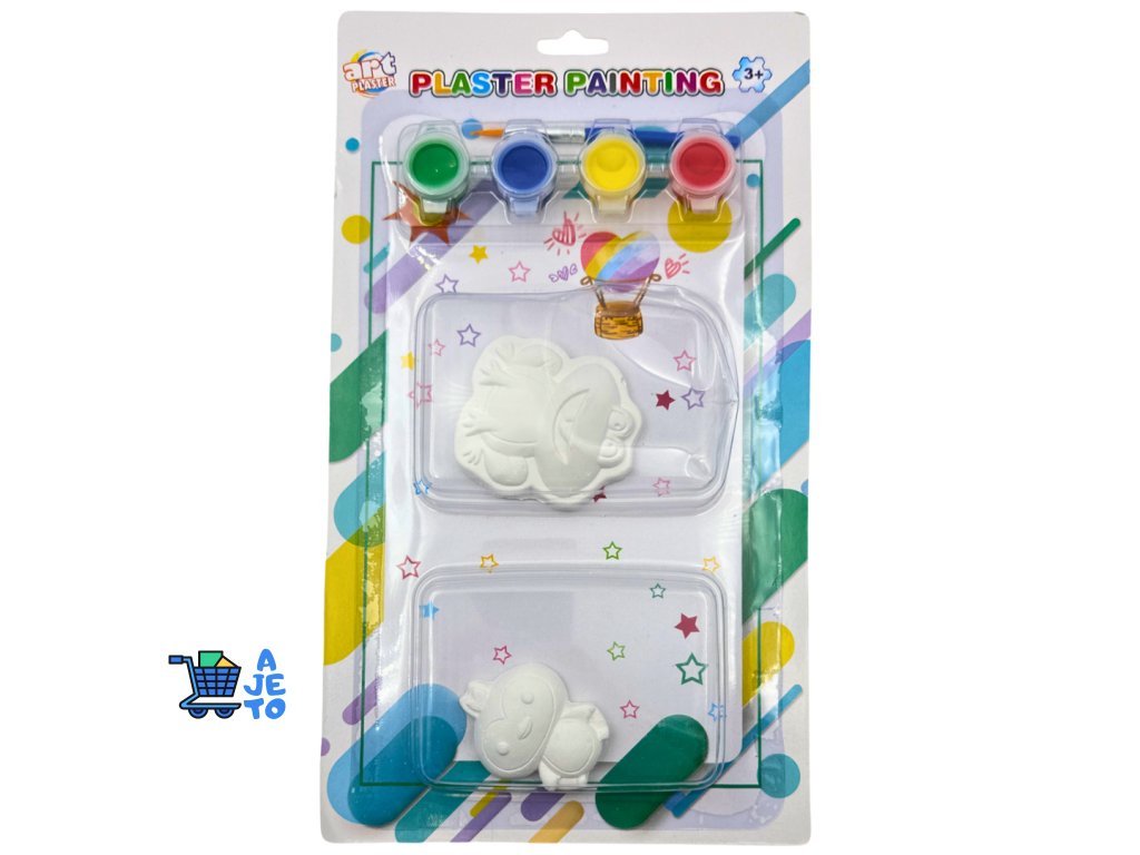 Balení obsahuje dva sádrové odlitky, sadu tří akrylových barev a malý štětec