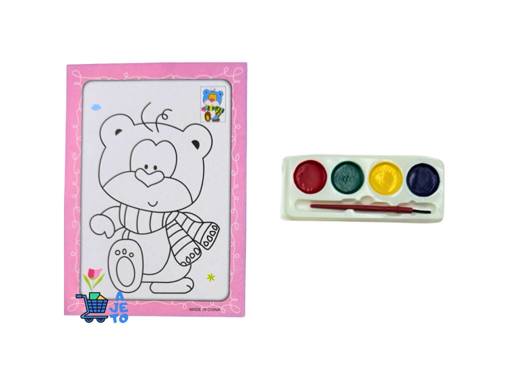 Balení obsahuje oboustranný obrázek k vymalování, vodovky a štetec