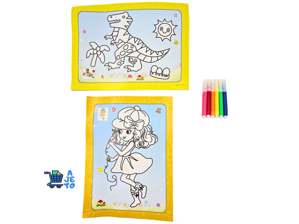Balení obsahuje dva obrázky k vymalování a sadu šesti barevných fixů