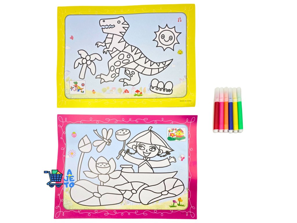 Balení obsahuje dva obrázky k vymalování a sadu šesti barevných fixů