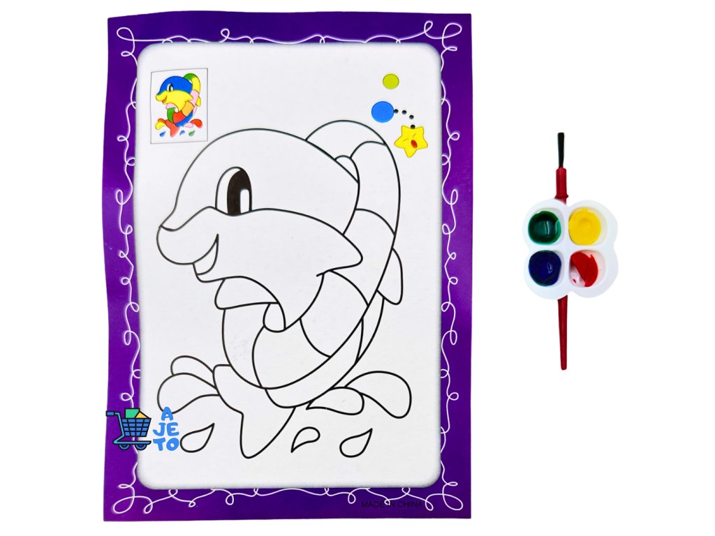 Balení obsahuje oboustranný obrázek k vymalování, vodovky a štetec