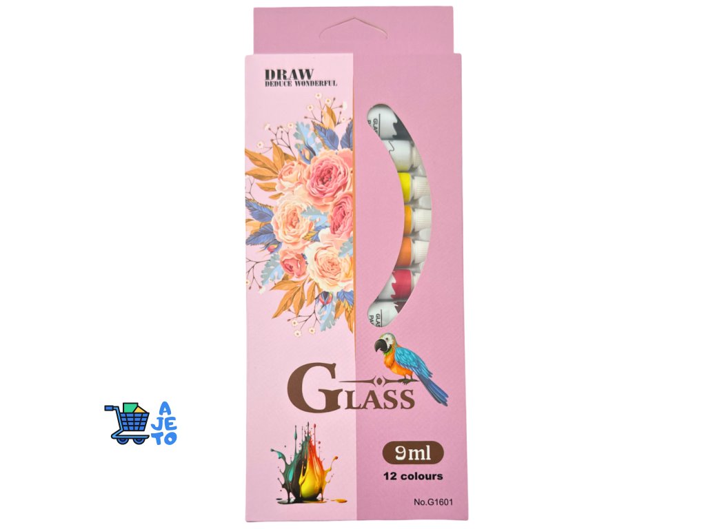 Balení obsahuje 12 kusů pestrobarevných barev na sklo pro kreativní tvoření